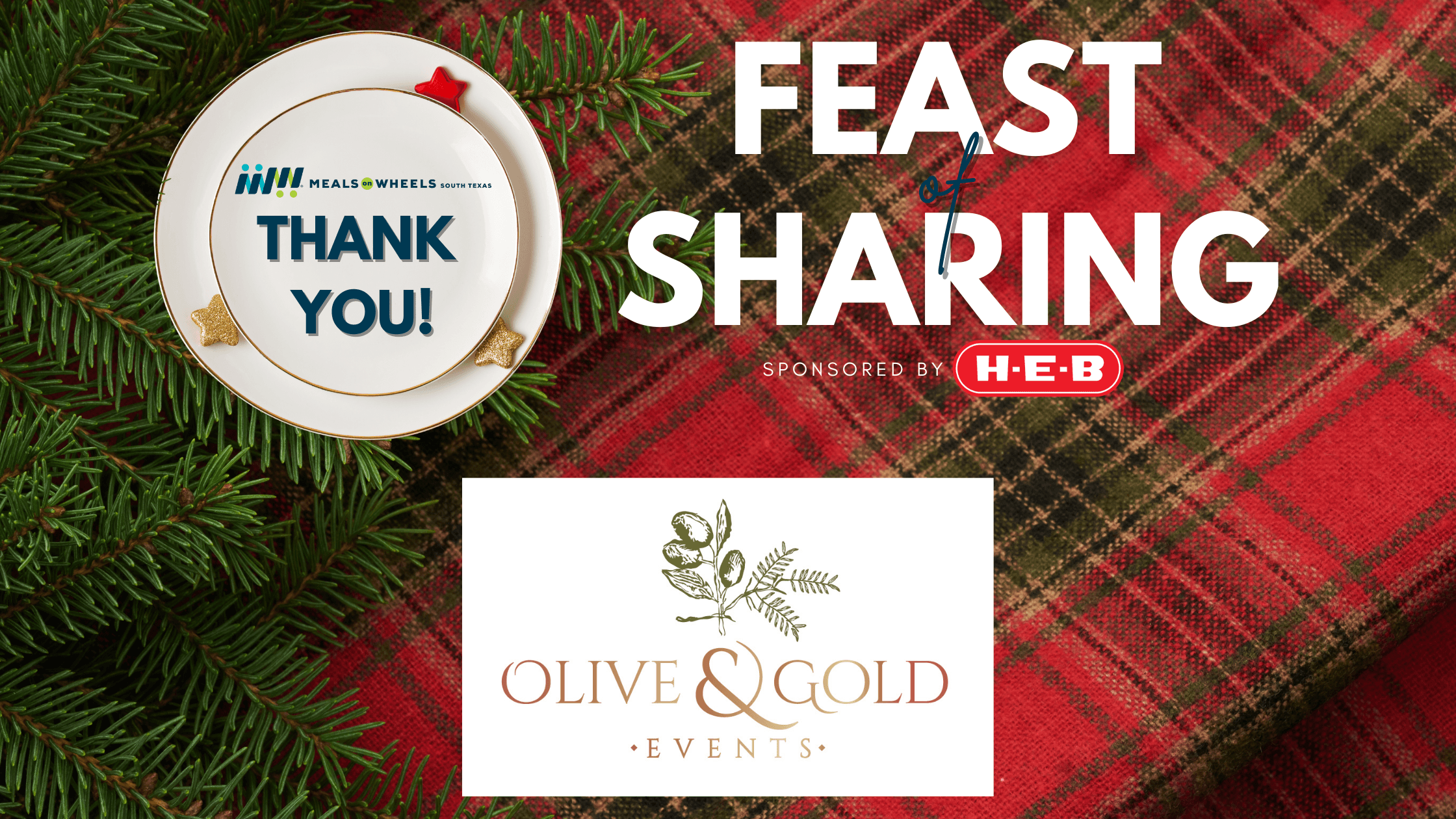 Meals on Wheels South Texas will deliver 500 holiday meals to homebound individuals in Victoria on Thursday, December 11th. The meals, prepared by Olive & Gold Events, are sponsored by H-E-B as part of the chain’s Feast of Sharing. This marks Meals on Wheels South Texas’ fifth year participating in this monumental and rewarding event, bringing H-E-B’s celebrated feast to homebound members of our community.